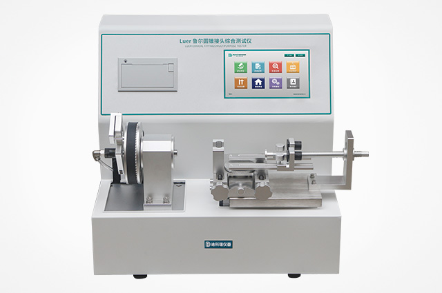 Luer-C2 魯爾圓錐接頭多功能測(cè)試儀主要用于注射器、注射針及其他醫(yī)療器械(如輸液設(shè)備)6%(魯爾)圓錐鎖定接頭的漏液、漏氣、分離力、放開扭矩、易裝配性、抗過載性、應(yīng)力開裂、抗滑絲性、正壓液體泄漏率、負(fù)壓空氣泄漏率的測(cè)試,是鑒定醫(yī)療器械魯爾圓錐接頭的重要手段之一。